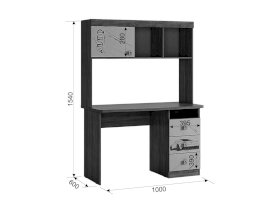 Стильный стол «Форсаж» – мечта каждого мальчика. Компактный стол прекрасно впишется даже в маленькое пространство детской комнаты. Удобная столешница подойдет как для письма, так и для занятий на компьютере или ноутбуке. Открытые полки и закрытые ниши надстройки стола хорошо подходят для хранения учебников  и школьных принадлежностей. В 3-х выдвижных ящиков поместится все, что необходимо для учебы и творчества. Эффектный принтерный рисунок на фасадах выдержан в общем стилистическом решении. Рисунок устойчив к истиранию и ультрафиолету.