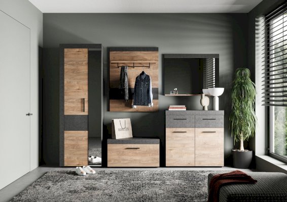 Компактная тумба для оформления прихожей. За откидной дверью 4 отделения. В отделениях тумбы Вы сможете хранить необходимые предметы (средства для ухода за обувью, мелкие аксессуары и т.д.).