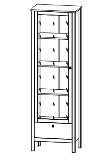 1 распашная стеклянная дверь, за которой расположены отделения с полками