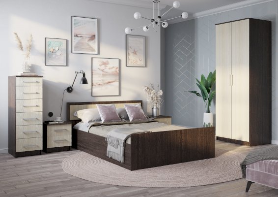 Лаконичная модель двухстворчатого шкафа Фиеста справится с размещением небольшого гардероба. При этом модель содержит достаточно вместительную зону с хромированной штангой для верхней одежды или одежды на вешалках, а также верхнее и нижнее отделение для хранения вещей. Изделие изготовлено из высококачественной ЛДСП в классическом сочетании цветов венге и лоредо.