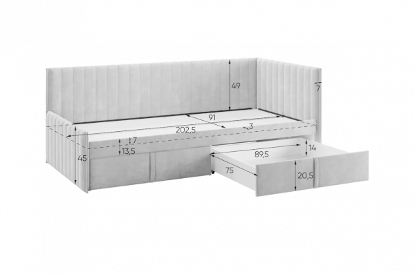 Вместительные выкатные ящики предоставляют дополнительные возможности для хранения постельного белья, одежды или других важных вещей, что особенно актуально для небольших помещений. Настил из ЛДСП гарантирует удобство и надежность использования.