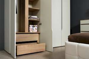 • Выдвижные ящики в шкафу за распашными фасадами