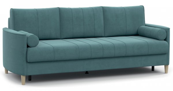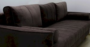Кант на торцах приспинyых подушек, сиденья и подлокотников. Защипы на сиденье и приспинных подушках. Две декоративные подушки-валика с защипами.