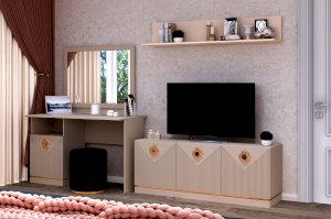 Купить письменный стол в гостиную или спальню - отличное решение.  Модуль очень функционален благодаря своей продуманной конструкции. Здесь вам доступны тумба с дверкой и ниша для открытого хранения всевозможных письменных принадлежностей, книг и журналов. Дизайн и наполнение стола позволят использовать его и как туалетный столик в спальне, в таком случае к нему прекрасной подойдёт зеркало Капри.