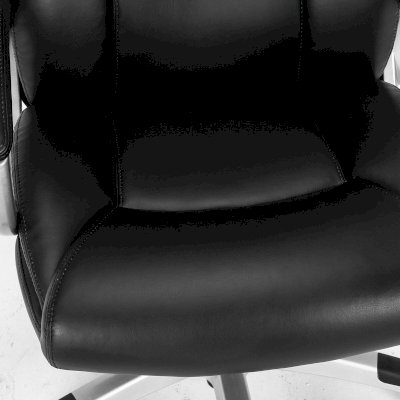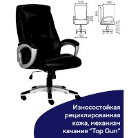 Обивка выполнена из высокотехнологичного, современного материала - рециклированной кожи. По эластичности и прочности рециклированная кожа максимально близка к натуральной. Этот материал устойчив к истиранию, что позволит сохранить внешний вид кресла на протяжении всего срока эксплуатации. Высокая спинка с широким мягким подголовником и боковой поддержкой гарантируют высокую степень комфорта на протяжении всего времени использования. В набивке кресла использован поролон высокой плотности - это обеспечивает оптимальную поддержку пользователя и препятствует "проминанию" сиденья в ходе эксплуатации.
