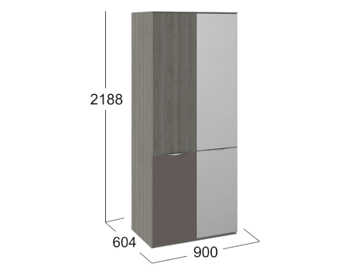 Шкаф для одежды с 1 зеркальной дверью и 1 с ЛКП Либерти СМ-297.07.026 (Трия)