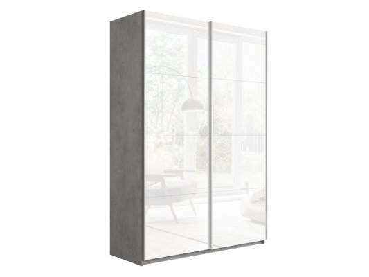 Шкаф-купе 2-х дверный Прайм Белое стекло/Белое стекло 1400х2300х570 мм Бетон