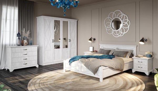 Кровать Лорена – это идеальное решение для интерьера квартиры или загородного дома в стиле неоклассика или прованс. Светлый цвет модного декора «Бетон пайн» с фактурой и рисунком натурального дерева добавят интерьеру уюта и умиротворенности. Высокое изголовье и изножье украшают декоративные крестообразные накладки и фигурный карниз.