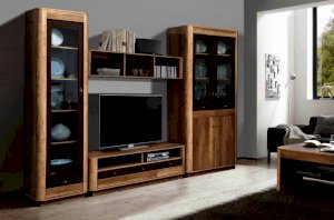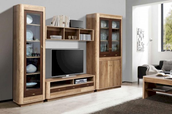 Высокий и изящный шкаф-витрина отлично впишется в интерьер гостиной или столовой. Он неслучайно называется витрина, потому что его главная задача – продемонстрировать свой внутренний мир. Фасад представляет собой рамочную конструкцию со стеклом. Внутри – пять одинаковых по высоте полок из ЛДСП, каждая из которых выдерживает вес до 5 кг. Здесь будет хорошо смотреться посуда. Если поставить такой шкаф в кабинет или детскую комнату, в него поместится небольшая библиотека.