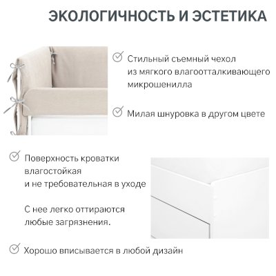 Чехлы на кровати съемные, надеваются и крепятся с помощью завязок.