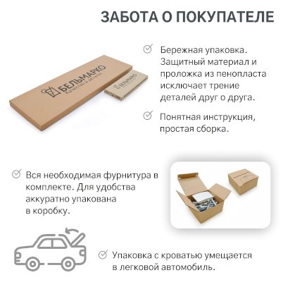 Комплект кровати состоит из каркаса кровати, ортопедического основания и мягкого чехла на спинку и изголовье.