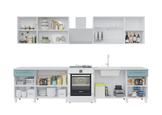 Объединяя два набора, размер кухни можно увеличивать и получать TREND 2600, суммируя наборы. Все кухни собираются в зеркальном исполнении.