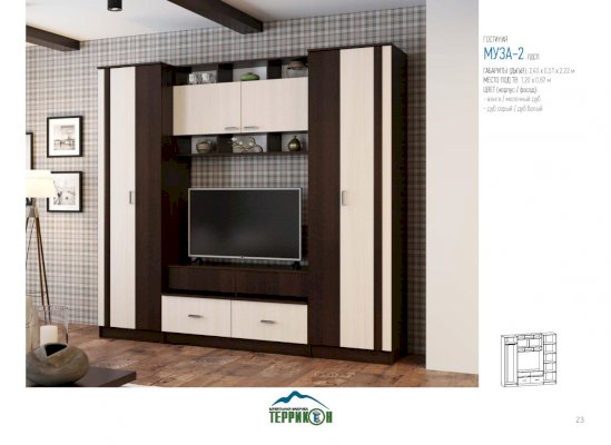 Гостиная Муза-2 (Террикон) - за 29 064 руб. в Подольске. Купите на сайте podolsk.onlinemarketmebeli.ru или по телефону 8(800)505-30-63 уже сегодня! Уточнить наличие, комплектацию, актуальную цену можно бесплатно у менеджера ежедневно. Закажите Гостиная Муза-2 (Террикон) до конца акции! Доступна покупка в кредит, рассрочку. Доставим со склада или на заказ.