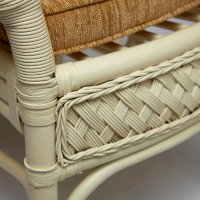 Материал: каркас - ротанг (высший сорт), мягкие элементы - ткань (хлопок+полиэстр) + наполнитель (холлофайбер), столешница - закалённое стекло