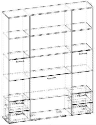 Применение задней стенки из ЛДСП (в ячейках с ящиками и фасадами) позволяет использовать данный стеллаж для зонирования пространства (чтобы предотвратить опрокидывание, необходимо обеспечить крепление стеллажа к стене).