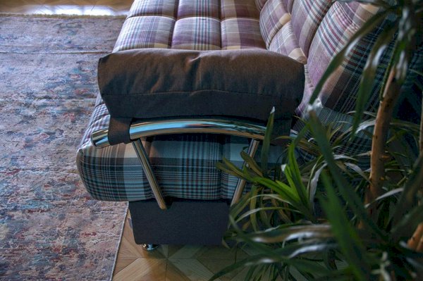 Отличительной чертой дивана являются стильные хромированные металлические подлокотники, специально подобранные под данную модель. Можно установить один или два подлокотника или вовсе использовать диван без них, не потеряв в комфорте.