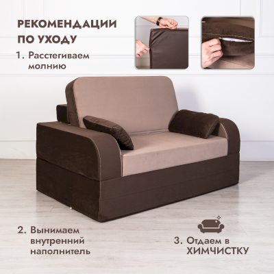Вес дивана всего 30 кг. Дно дивана изготовлено из плотного кожзама. В процессе уборки его легко передвинет самая хрупкая девушка. Наружный чехол легко снимается благодаря застежкам-молниям для передачи его в химчистку.