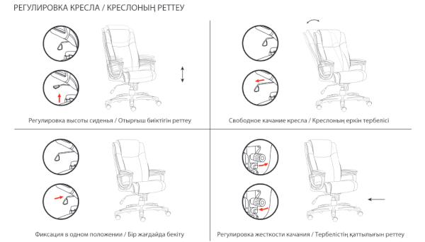 Тип механизма кресла: "топ-ган" качание с регулировкой под вес и фиксацией в 1 положении