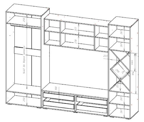 Ниша под ТВ (ШхВ): 1500х977 мм