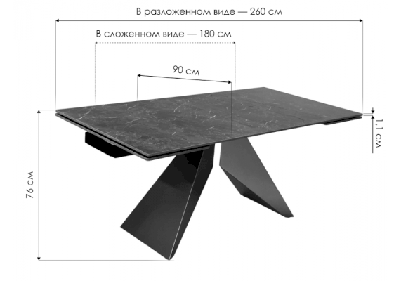 Длина разложенного столика, мм 2600