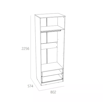Шкаф «Фанк» предназначен для тех, кто любит выдержанный стиль. Идеально для организации подростковой комнаты. А универсальный дизайн и цветовое решение подойдет как для мальчика, так и для девочки. Внутри модуля предусмотрены овальная штанга для одежды на вешалках. Широкая антресольная полка подойдёт для размещения коробок и аксессуаров. Плавный и бесшумный ход, у двух выдвижных ящиков, обеспечивают шариковые направляющие полного цикла. Благодаря им, равномерно распределяется вес содержимого ящиков.  Классические глухие фасады надежно защитят содержимое шкафа от влаги и пыли.