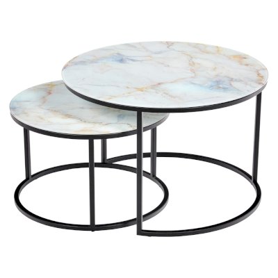 Элегантная пара кофейных столиков Tango станет изящным дополнением любой гостиной или даже спальни. Рисунок на столешнице, выполненной из закалённого стекла с имитацией натурального камня, завораживает и притягивает взгляд. Столики можно расположить парой или расставить по отдельности. Чёрные ножки позволят вписать этот набор в любой интерьер.