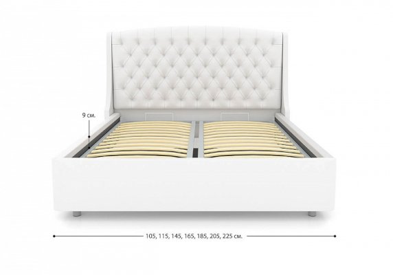 Стильная и комфортная интерьерная кровать. В комплект кровати входит кроватное основание. Кровать выглядит гармонично как в классическом интерьере, так и в современном, что открывает простор для смелых дизайнерских решений. Подъемный механизм и бельевой короб делают кровать практичной и функциональной.