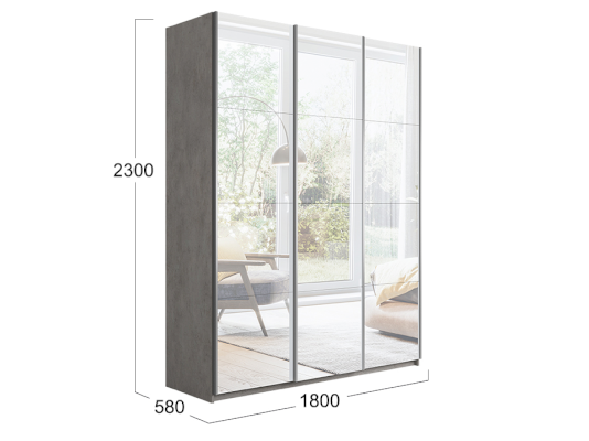 Трехдверный шкаф-купе с 3 зеркалами Траст 1800 (Трия)