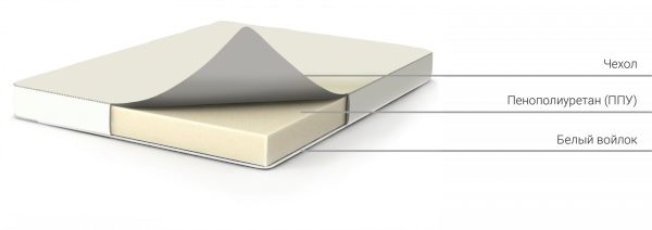 В составе матраса – высококачественный пенополиуретан (ППУ). Такие матрасы используются в большинстве наших моделей и дарят комфортный отдых и сон.